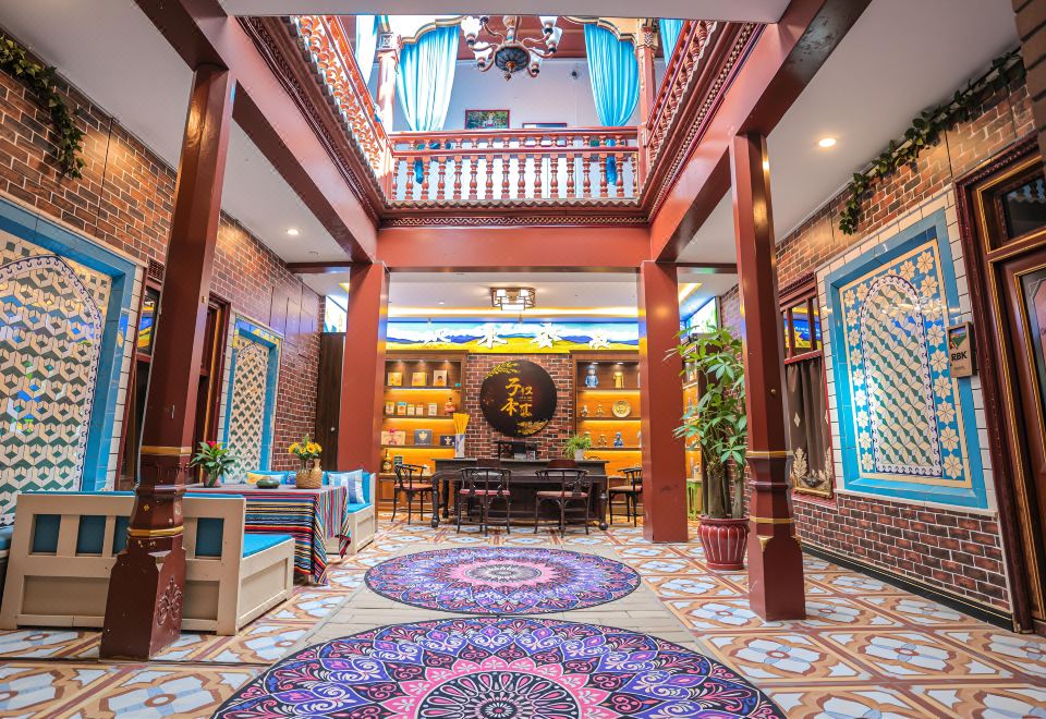 세 숙소 중 가장 독특하고 화려한 분위기를 자랑하는 곳은 Copper Coin Guesthouse입니다. 이곳은 위구르족 전통 건축 양식에 모로코 스타일이 가미되어 매우 이국적입니다. 투숙객들은 '객실이 민족적 특징이 있는 매우 아름다운 곳'이라고 평가하며, 심지어 사장님이 사진 촬영을 위해 민족 의상을 두 세트씩 준비해 둘 정도로 분위기에 진심입니다. 특히 옥상 테라스는 오래된 도시 건물과 TV 타워를 조망하며 인생 사진을 남기기에 완벽한 스팟으로 꼽힙니다.